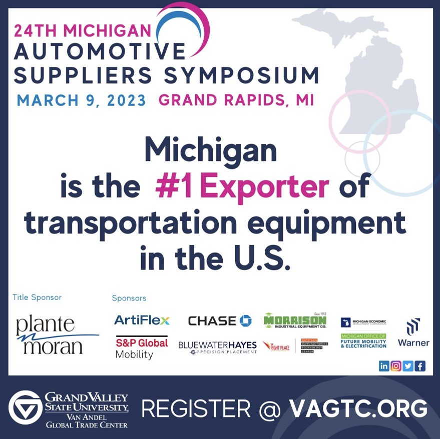We can’t wait for the GVSU-VAGTC 24th @Michigan Automotive Suppliers Symposium tomorrow, Thursday, 3/9! We are thrilled to sponsor this event and are excited to talk to all who stop by. We hope to see you there!